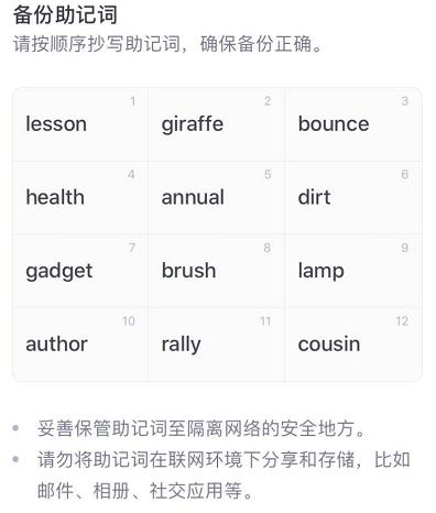 所以自己一定要保存好自己的助记词。