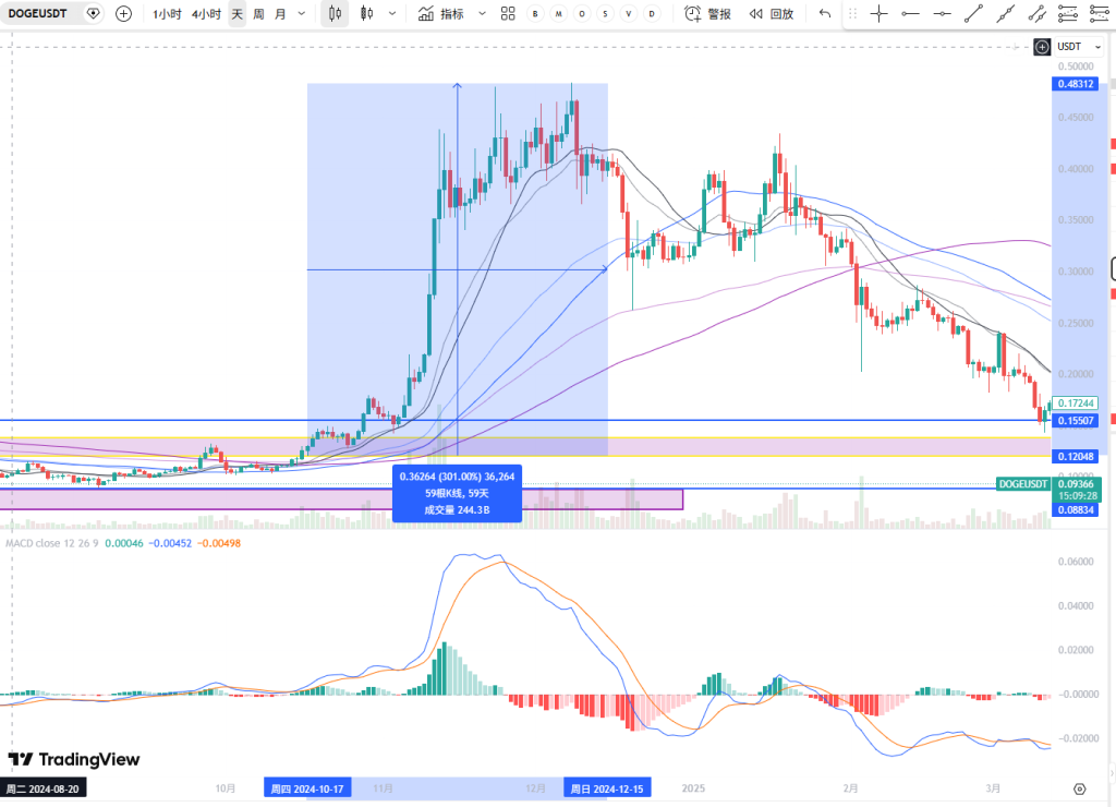 最后再看一下24年11月狗狗币的这波行情。