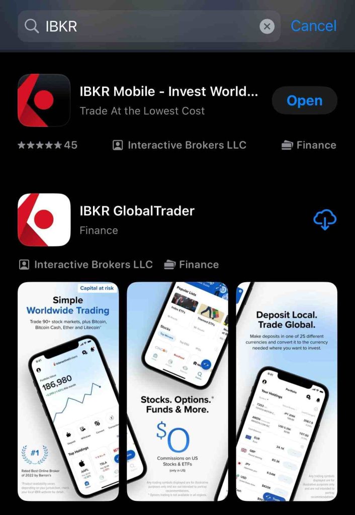 黑色的”IBKR Mobile”和白色的”IBKR GlobalTrader”, 这两个都是盈透的官方App,下载哪个都可以。