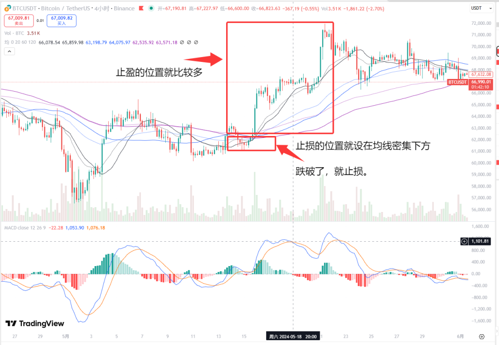 如果我们是基于均线密集开仓的,那就跌破均线密集就止损。