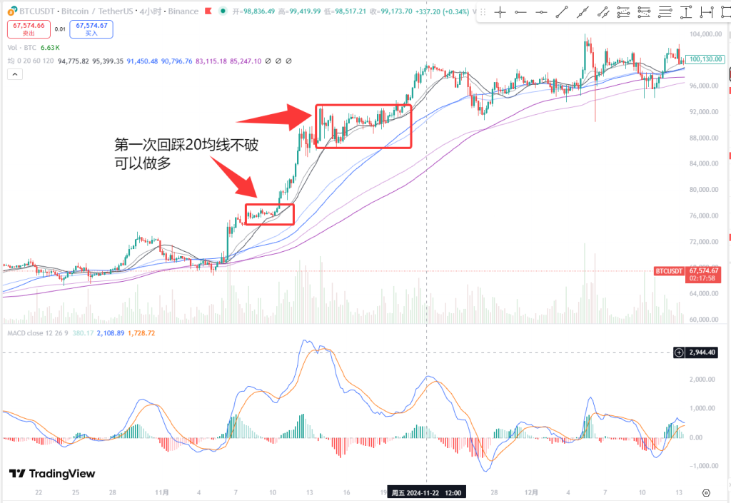 当蜡烛图第一次回踩20均线不破,也可以继续开仓。