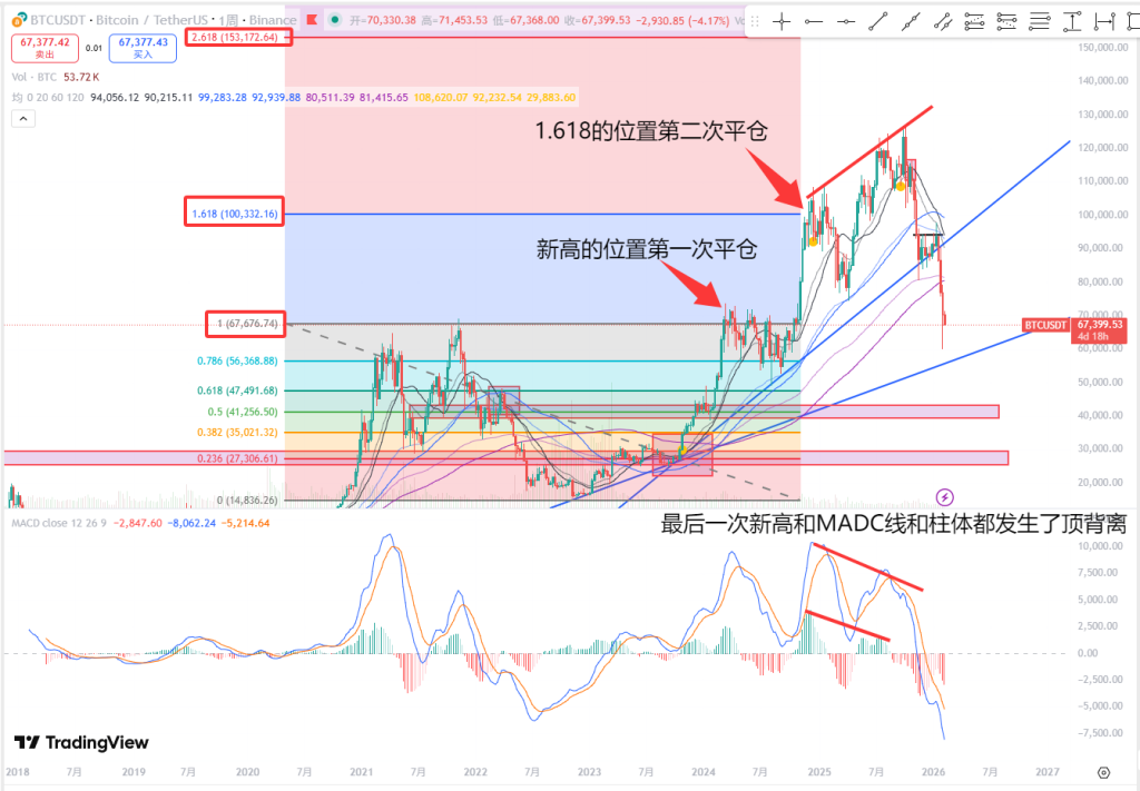 所以就可以分批平仓,在最后创新高的时候,和MADC线和柱体都发生了顶背离,然后就开始下跌了。