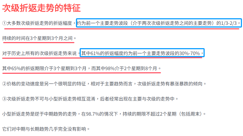 《以统计方法归纳主要趋势与次级折返走势》说到: